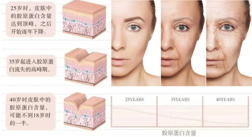 想要针对肌肤老化,松弛状态做逆生长处理就必须了解清楚导致肌肤衰老的真相,就拿最常见的法令纹和眼角纹来说,产生的原因就是胶原蛋白的流失,随着年龄增长,胶原蛋白流失的速度也就越快,皮肤失去弹性纤维导致肌肉松弛老化留下纹路,这属于内在的衰老,而医美手段就是跟内在衰老进行对抗。